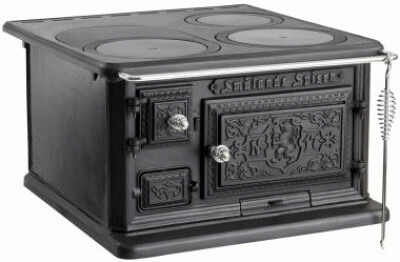 Der erste von uns nach dem Vorbild des Modells 1896 gebaute Herd, wird heute aus einem noch härteren Gusseisen hergestellt. Die Verkleidung der Backofendecke besteht aus einer 15 mm dicken Specksteinplatte, die für gleichmäßige Verteilung und Speicherung der Wärme sorgt. Wird der Backofen mit Schamottsteinen gefüllt, hält er die Wärme sogar über Nacht. Zur Verbesserung der Wärmeabstrahlung kann der Herd auch mit seitlichen Heizrippen versehen werden. Der Kaminanschluss ist entweder rückseitig oder oben. Zum Lieferumfang gehören ein Schürhaken, ein Rußschaber, eine Aschenschublade, Ofenschwärze, Ofenkitt, ein Thermometer und zwei flache Backbleche. Beim Herd mit hinten liegenden Kaminanschluss werden auch die Wandmutter und der Ofenrohranschluss mitgeliefert.
